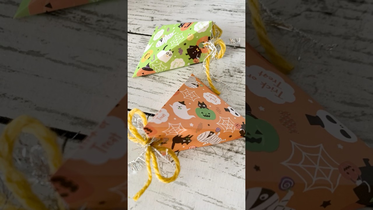 タイトル | ハロウィン折り紙1/2で作る簡単三角ギフトパッケージ♪ #くらふとふぁむ #100均 #ハンドメイド |