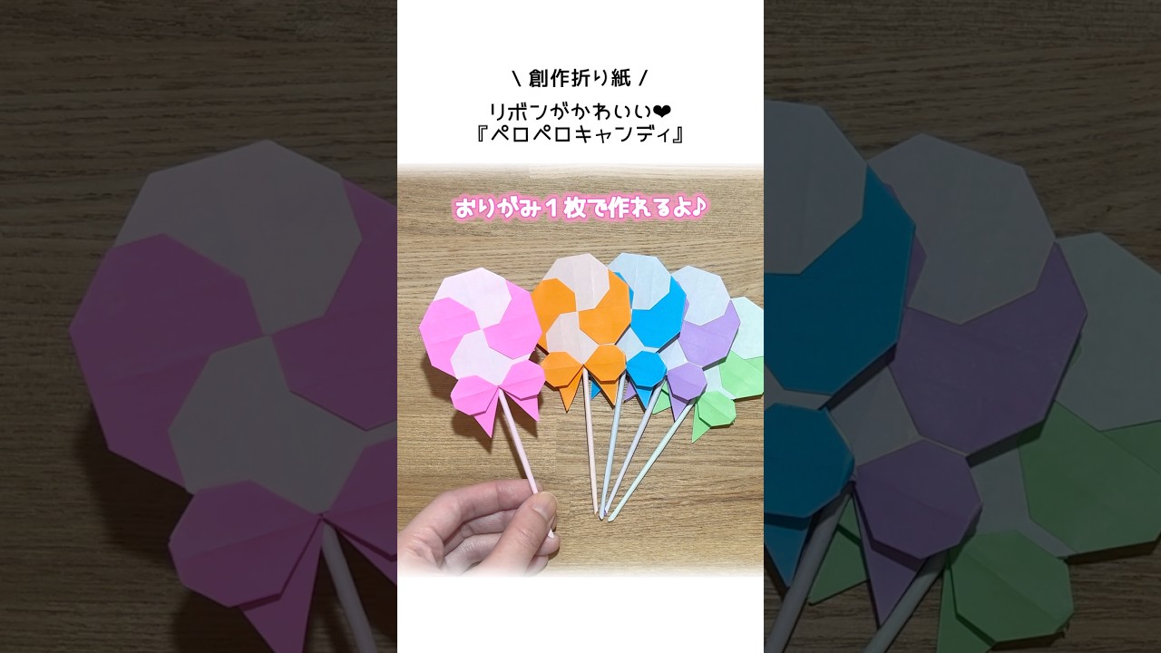 タイトル | 【折り紙1枚】リボンが可愛い 『ペロペロキャンディ』 ※詳しい作り方はYouTube本編から♪ #折り紙 #キャンディ #ハロウィン #お菓子 #origami #candy #shorts |