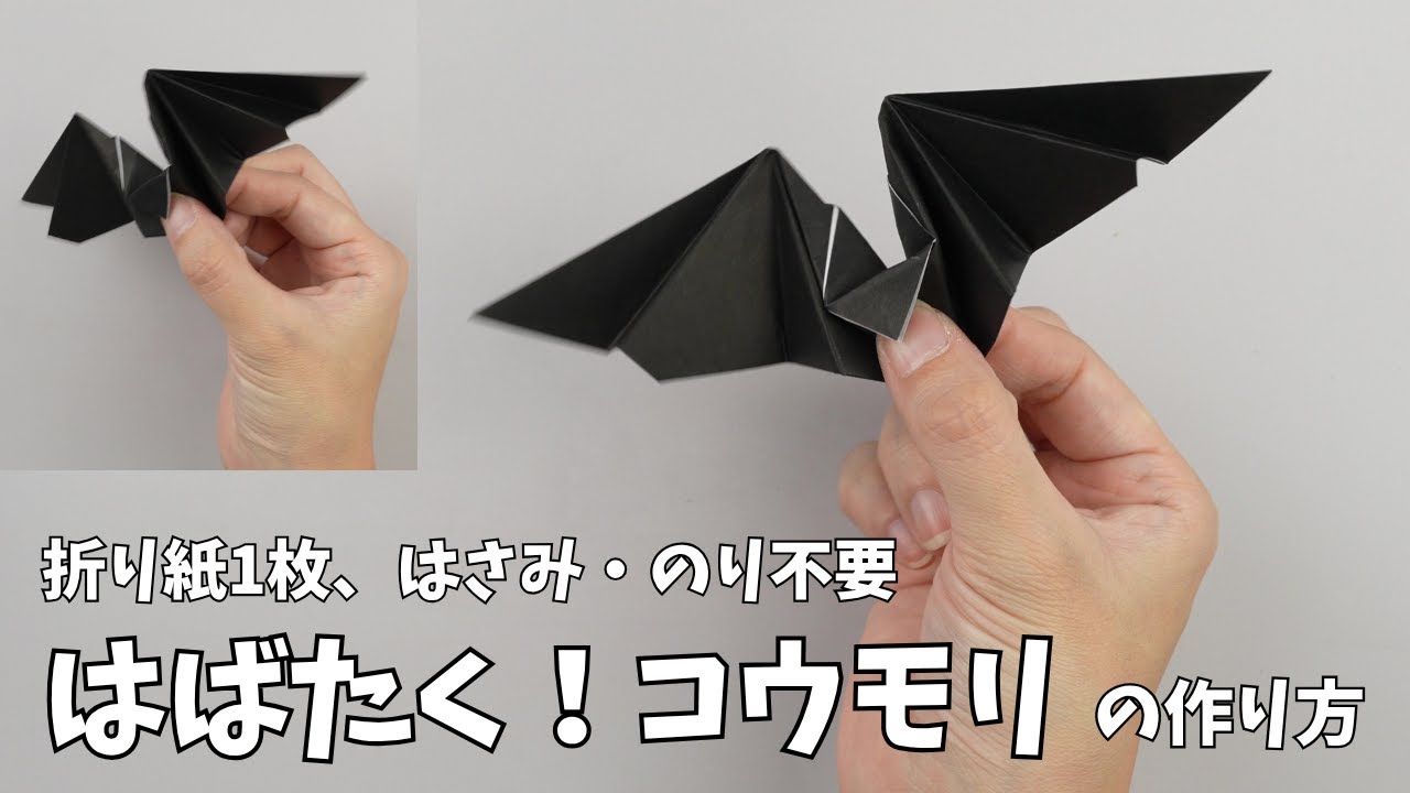 タイトル | 【折り紙1枚】ハロウィン!羽ばたくコウモリの作り方【簡単・遊べる・のり不要】 |