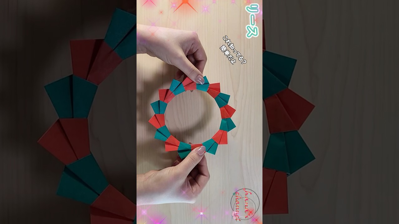 タイトル【簡単折り紙】クリスマスリースの作り方✨How to make paper wreath#花輪#花環#화환#Christmas#wreath#折り方#おりがみ#origami#摺紙#종이접기#DIY