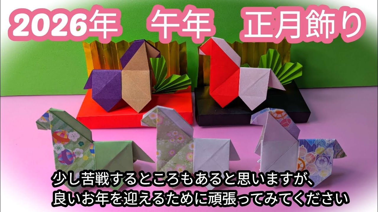 タイトル2026年、令和8年、午年【正月飾り折り紙】簡単かわいい馬の折り方