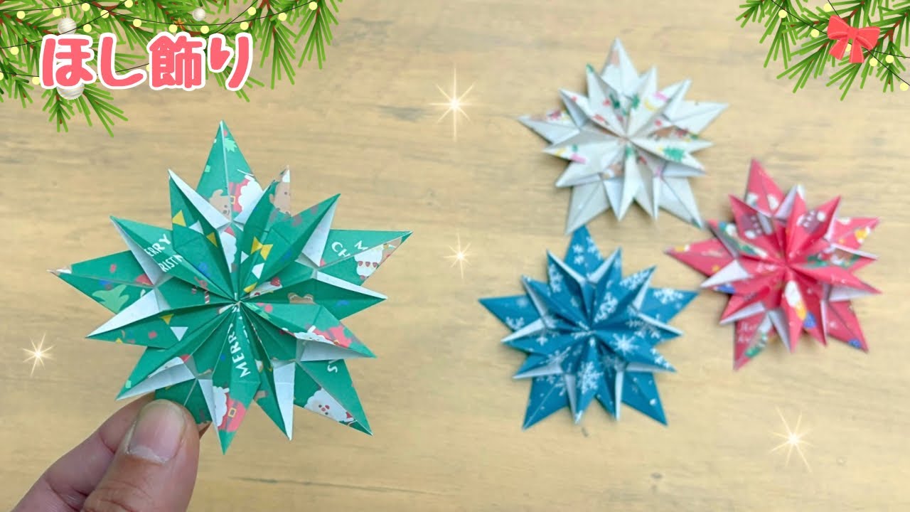 【冬の折り紙】簡単 可愛い クリスマスの星飾りの作り方[Origami]How to make a star decoration – みっつのおりがみ