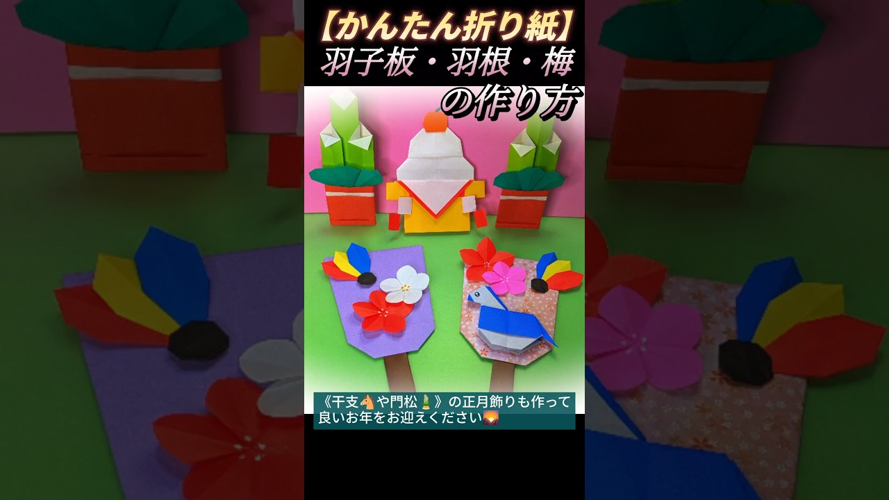 | タイトル | 簡単折り紙《羽子板・羽根・梅》正月飾りの作り方 |