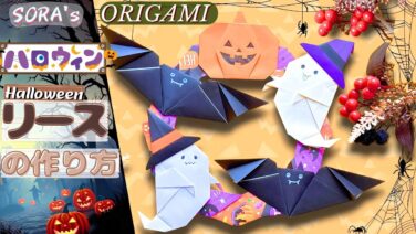ハロウィン 【ハロウィンの折り紙 リースの作り方】かぼちゃとおばけ、こうもり付きの飾り【ソラ】 – 【Sora’s Origami】Paper crafts 出典:YouTube / 【Sora's Origami】Paper crafts 2025.10.18 ハロウィン